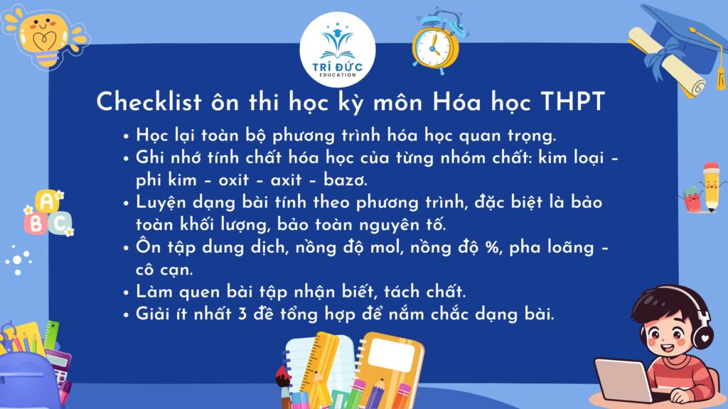 • Học lại toàn bộ phương trình hóa học quan trọng.