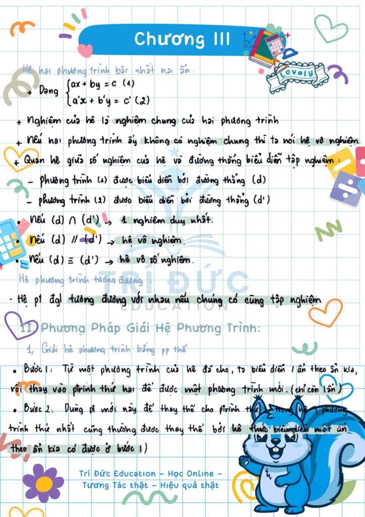 • Các phương pháp giải hệ phương trình: thế, cộng đại số.