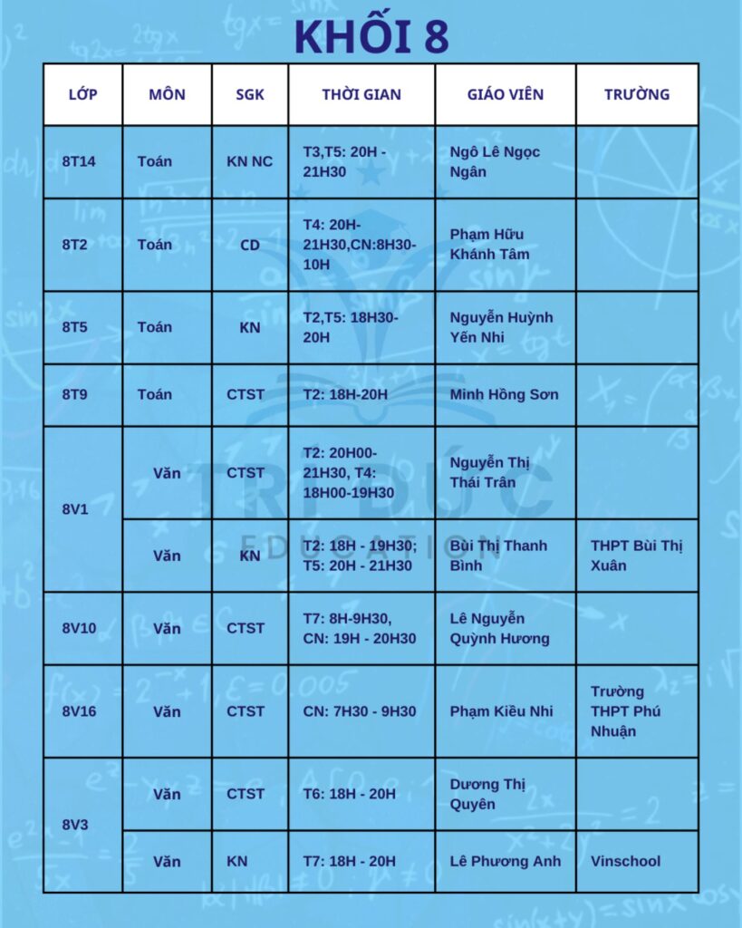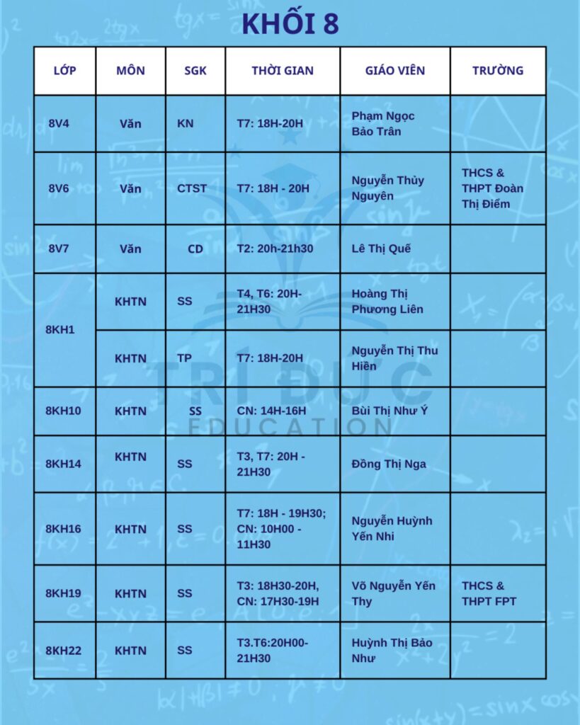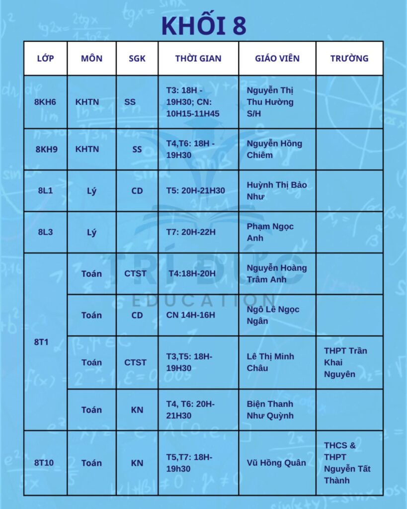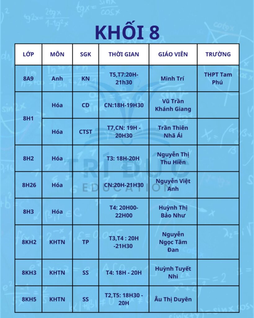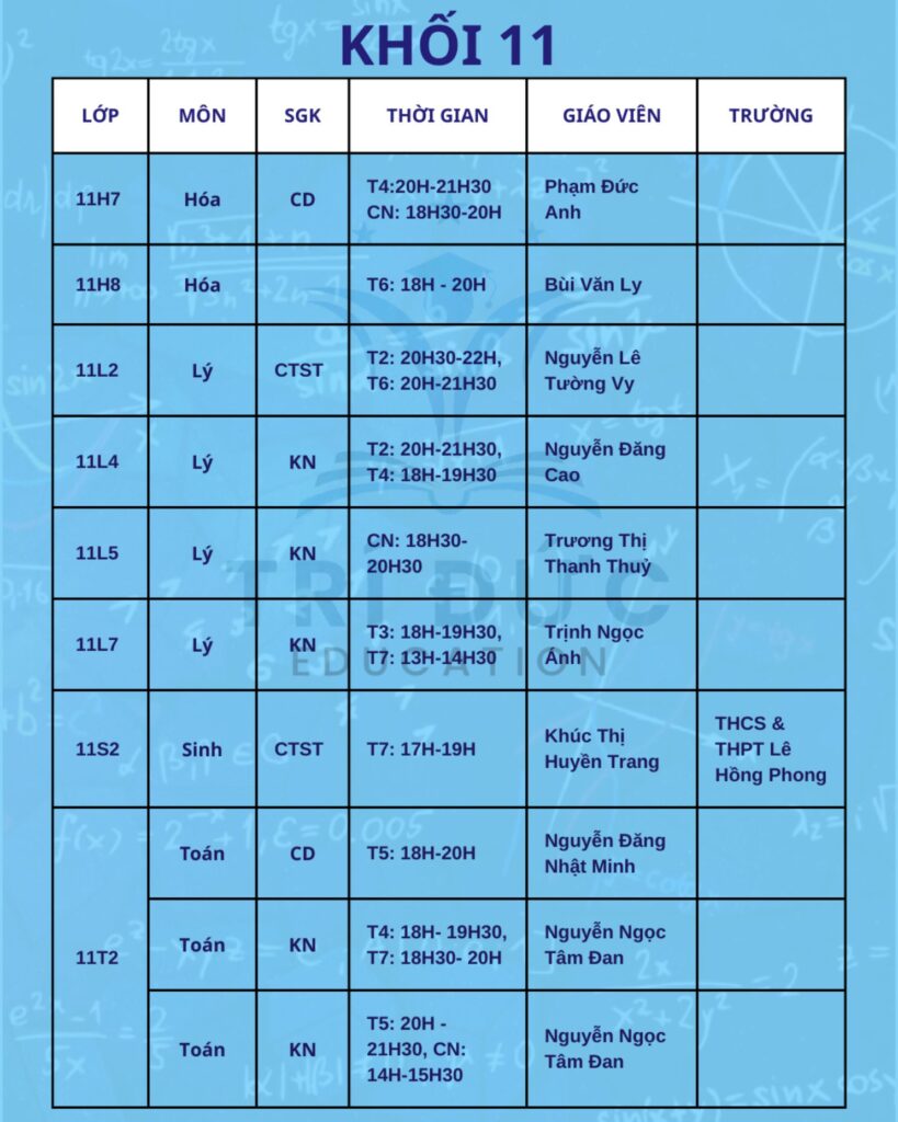 Trí Đức Education trân trọng thông báo lịch học tháng 2 dành cho các khối lớp đang theo học tại trung tâm. Trong tháng này, các lớp học được tổ chức theo kế hoạch đào tạo đã xây dựng từ đầu năm học. Nội dung giảng dạy tập trung ôn tập kiến thức nền tảng, hệ thống lại các chuyên đề quan trọng và từng bước tăng tốc để chuẩn bị cho các bài kiểm tra trong học kỳ II.
