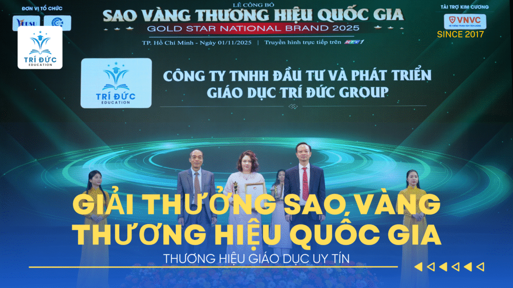Ngày 1/11/2025, Hệ thống Giáo Dục Trí Đức được vinh danh là “Hệ thống giáo dục trực tuyến Uy Tín ” tại Lễ trao giải Sao vàng thương hiệu quốc gia 2025, diễn ra tại Nhà hát Bến Thành (TP.HCM).
