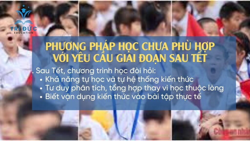 Một nguyên nhân quan trọng khác là nhiều học sinh vẫn giữ nguyên phương pháp học cũ, trong khi yêu cầu học tập đã thay đổi rõ rệt. Sau Tết, chương trình học đòi hỏi:
