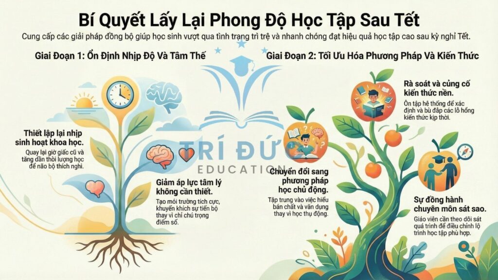 thì việc học sau Tết dễ trở nên mơ hồ, thiếu định hướng. Học sinh không biết nên bắt đầu từ đâu, cần cải thiện phần nào trước, dẫn đến học dàn trải, kém hiệu quả.